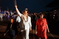 И еще о важных для нас событиях фестиваля. Главный символ «Самотлорских ночей» - Факел - по традиции зажигали представители выдающихся трудовых династий Нижневартовска. Среди них была и библиотечная династия – Татьяна Фурсова, заведующая ДЮБ №7 и Ирина Ефимова, директор ЦГБ им.М.К.Анисимковой. Именно Ирине Николаевне была предоставлена честь непосредственно зажечь огонь! А заведующая отделом хранения фондов ЦГЮ Людмила Виняцкая в составе заслуженных людей города торжественно выносила флаг «Самотлорских ночей». Гордимся своими коллегами!